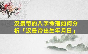 1、汉景帝的 🦋 八字命理如 🦢 何分析