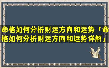 1、命格 🐳 如何分析财运 🌼 方向和运势