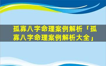 2、孤 🌴 寡八字命理案例解析大 🐱 全