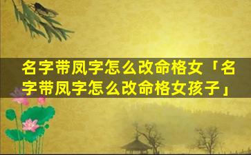3、名字带凤字怎么 🦟 改 🕊 命格女孩