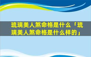 2、琉璃 🌸 美人煞命格是什么 💐 样的