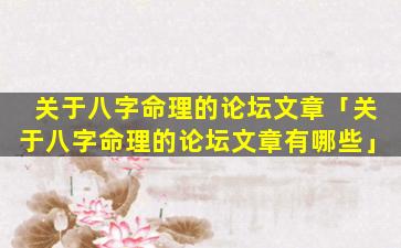 4、关于八 🐦 字 🐼 命理的论坛文章大全