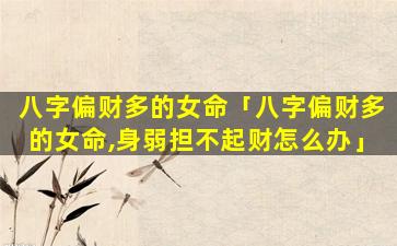 2、八字偏 🌵 财多的 🐞 女命,身弱担不起财怎么办