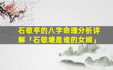 命格简析:石 🌷 敬亭八字为食神格,日,主,辛,金旺相食神亥水生助日主为人聪明伶俐有才华八字。中,土,旺,金,弱 ☘ 金为。用神,喜,土生。扶主有贵人相助事业运势不错但八字中木旺是忌神 🦈 主竞争压力大需注意感情方面的纠葛