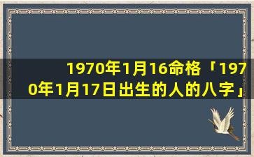 2、1970年 🦍 1月17日出生的人的 🐴 八字