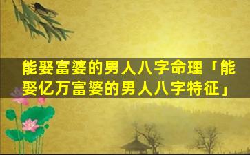 2、能娶亿万富婆的男人八 🐼 字特 ☘ 征