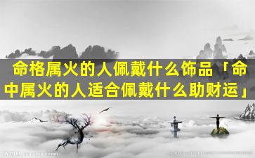 3、命格属火的 🌼 人佩戴什么饰品 🐟 最好