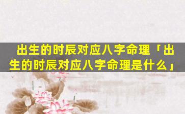 出生的时辰 🐵 对应 🦢 八字命理图解