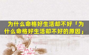 3、为什么命格好生活 🐧 却不好呢 🐳
