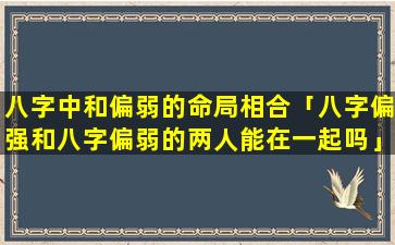 1、八 🌺 字中和 🐟 偏弱的命局相合
