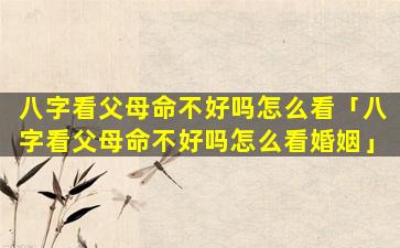 2、八字看父母命不 🌿 好吗怎么看婚姻