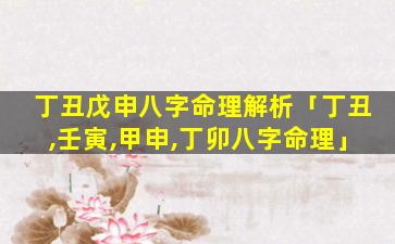 1、丁丑戊申 🐵 八字命理 🐱 解析