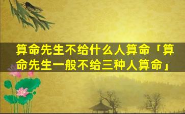 4、算 🦟 命先生不给什么 🦈 样的人算命
