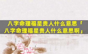 3、八字命 🐕 理福星贵 🦍 人什么意思呀