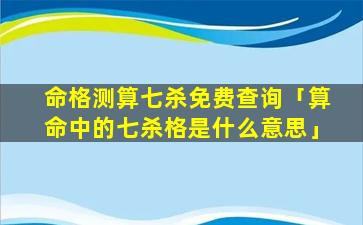 3、命格测算七 🐒 杀免费查询下载 🐺