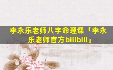 李永乐 🦅 老师八字命 🌺 理课 🌹