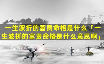 2、一生波 🦆 折的富贵命格是什么意思啊