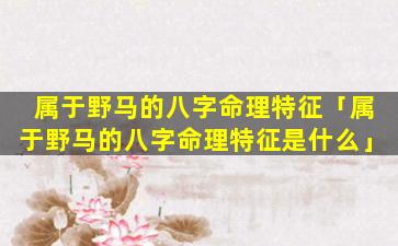 4、属 🌷 于野马的八字命理特征 🪴 是