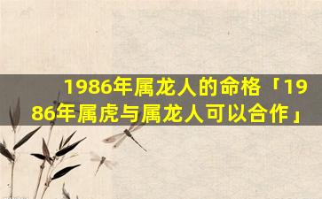 1986年属虎与属龙的人 🐡 合作需要克服性格差异、沟、通障碍竞争心态和信任问题等挑战,但通,过合理的建议和双方的努力合作也可以取得一定的成果。
