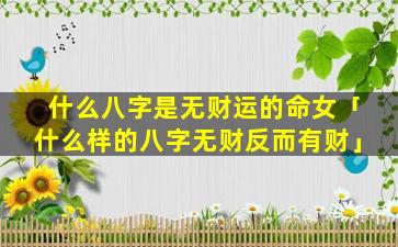 3、什么八字是无财运的 🐕 命女呢 🌷