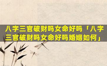 2、八字三官破财吗女命好吗婚姻如 🐞 何