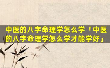4、中医的八字命理 🌷 学怎 🌲 么学的