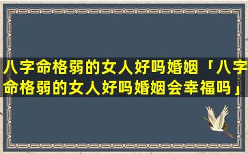 2、八字命格弱 🌵 的女人好吗婚姻会 🦊 幸福吗
