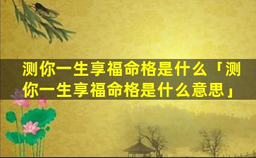 2、测你一 🍁 生享福命格是 🌺 什么意思