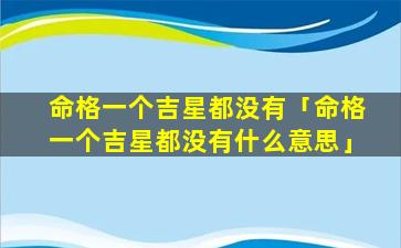 3、命格一个吉 🕷 星都 🦈 没有怎么办
