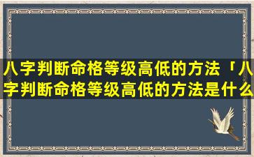 2、八字判断命格 🐧 等 🐦 级高低的方法是什么