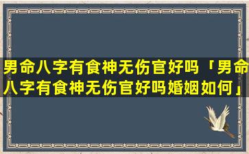 2、男命八字有食 🌻 神无伤官好 🦅 吗婚姻如何