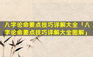 八字论命要 🌸 点技巧 🐱 详解大 🍀 全图解