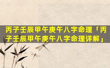 2、丙 🐛 子壬辰甲午庚午八字命理详 🐦 解