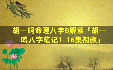 3、胡 🌼 一鸣八字全部讲解视 🦆 频