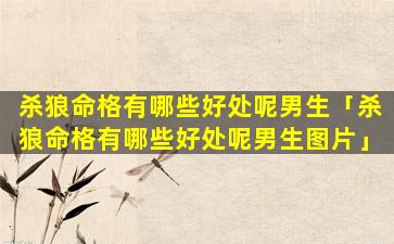 1、杀狼命 🐬 格有哪些 🐛 好处呢男生
