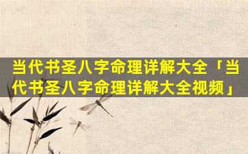 抱歉,我没有有关“当代书圣八字命理 💮 详解大全视 🐵 频”的信息。