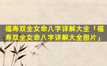 1、福寿双全 🐺 女命八字详解大 🐎 全