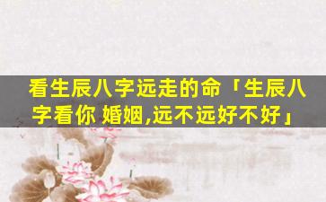 2、生辰八字看你 婚姻,远不 🐞 远好不好