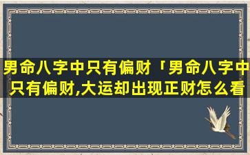 男命中只有偏财,大,运出 🌵 现正财妻 🦅 子情况分析: