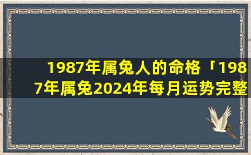 1987年属兔 🐅 年 🐈 2024每月运势完整版 🐞
