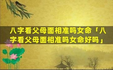 3、八字看父母面相准吗女命 🐵 婚姻