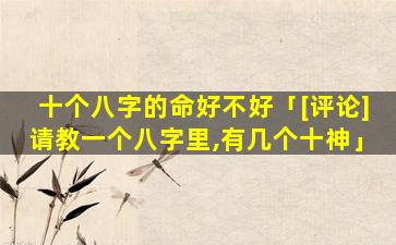 要判断一个人“十个八字的命好不好”,需要,根据具体八字的组合和格局进行分析无法仅凭出生年份或月份给出准确结 🌲 论。