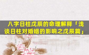 2、浅谈 🌸 日柱对婚姻的影响之戊辰篇