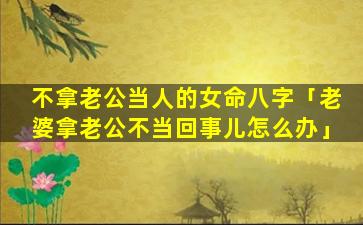 3、媳妇 🦁 不把老 🦅 公当回事的词语
