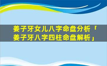 1、姜子牙女儿 🌲 八字命盘 🐱 分析