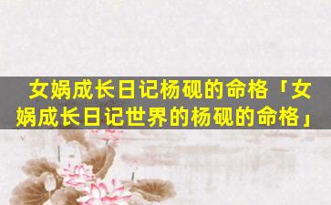 1、女娲成长日记杨砚 🐵 的 🦆 命格