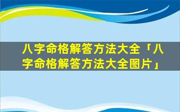4、八字命格解答方法大 🦟 全图 🕊 解
