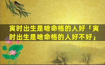 2、寅 🦉 时出生是啥命格的人好 🍀 不好