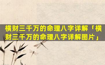 2、横财三千万的 🍀 命理八字详解图片 🦅
