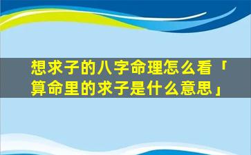 1、想求子的八字命理 🕷 怎 🍁 么看